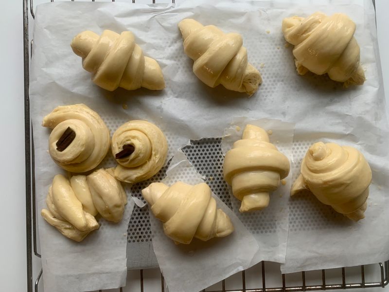 - Stretched the croissants a bit, but not too much because of elastic recoil