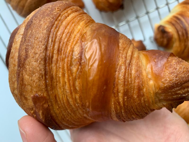 - Nice contrast between egg washed glossy layers and dry drifted layers